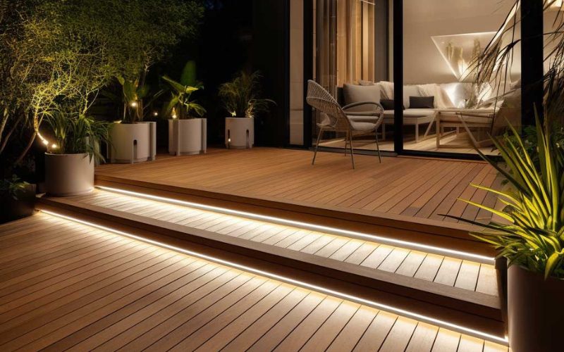 Soft illumination from solar wall lamps creates a warm and welcoming atmosphere after sunset while highlighting architectural features.